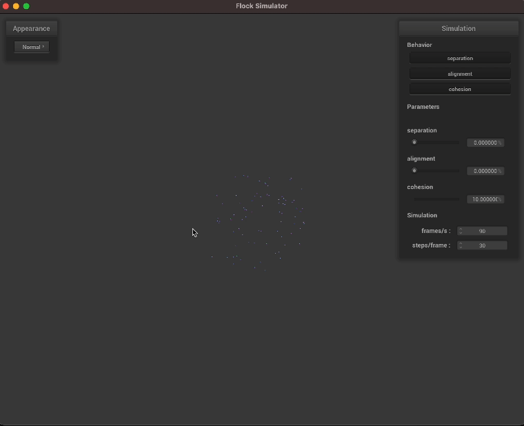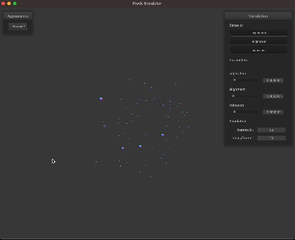In our proposal, we planned to simulate a flock of birds using the Boids algorithm. We have since created a basic implementation of Boids behavior in C++ with a working GUI. Moving forward, we plan to implement a few other features that we will delve into below.